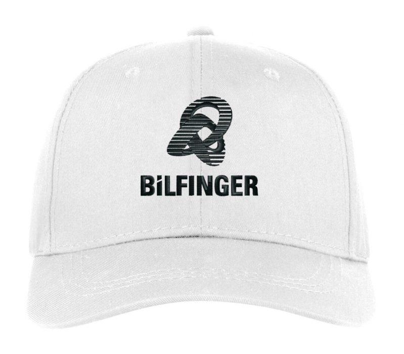 Brodert Bilfinger logo i sort på front.